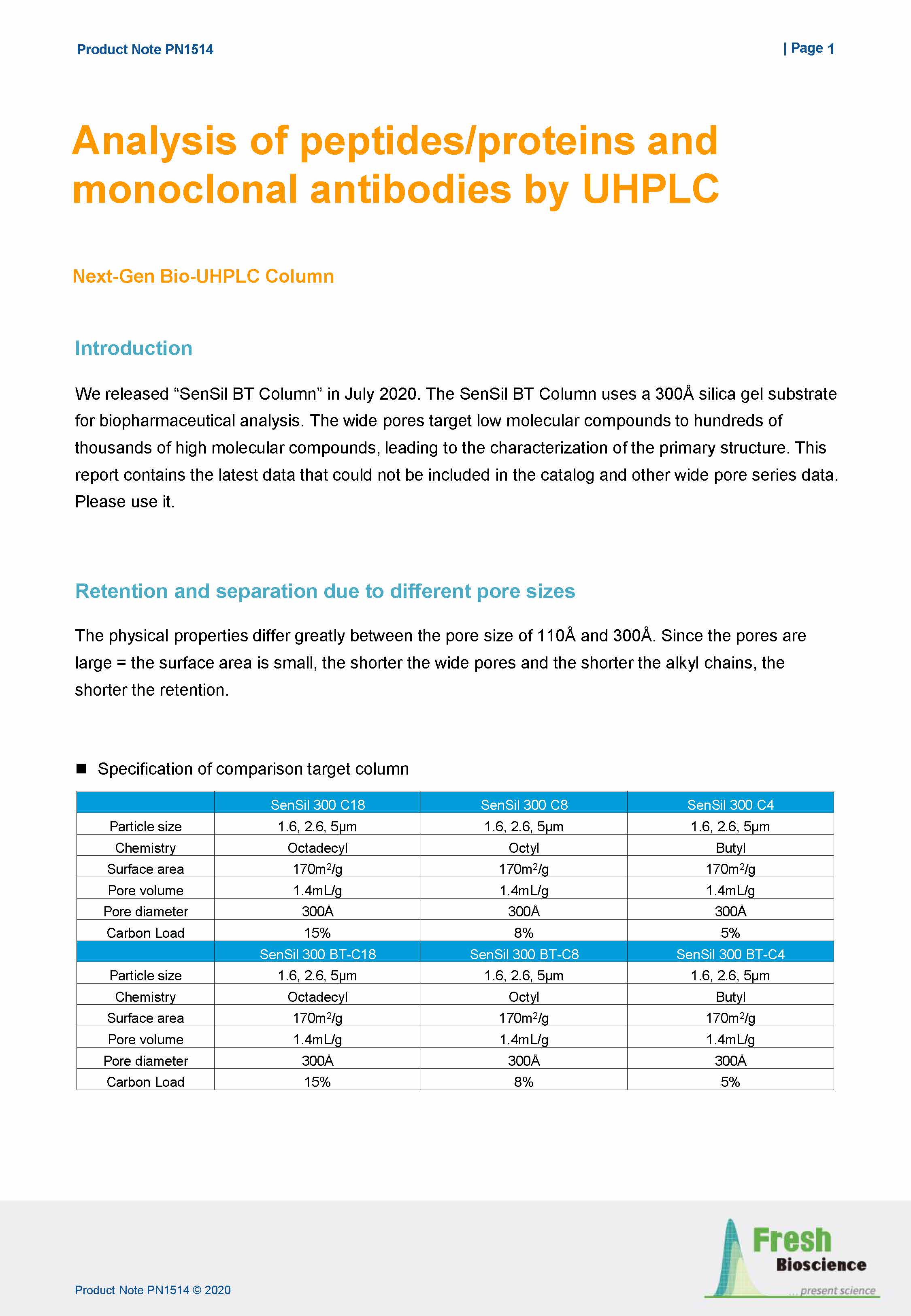 完全生物惰性的1000埃孔径C4色谱柱,从完整抗体到酶解肽图分析,加速生物制品研发过程。