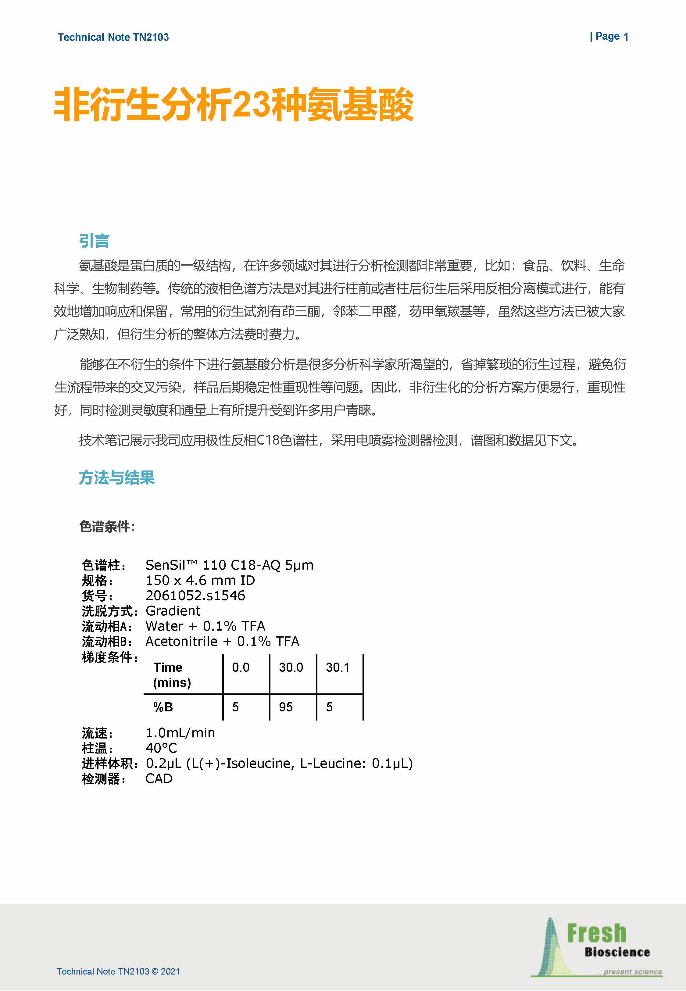 采用C18-AQ色谱柱进行23种氨基酸分析,非衍生方法能够极大提高分析通量,且此款色谱柱能够将亮氨酸和异亮氨酸基线分离。
