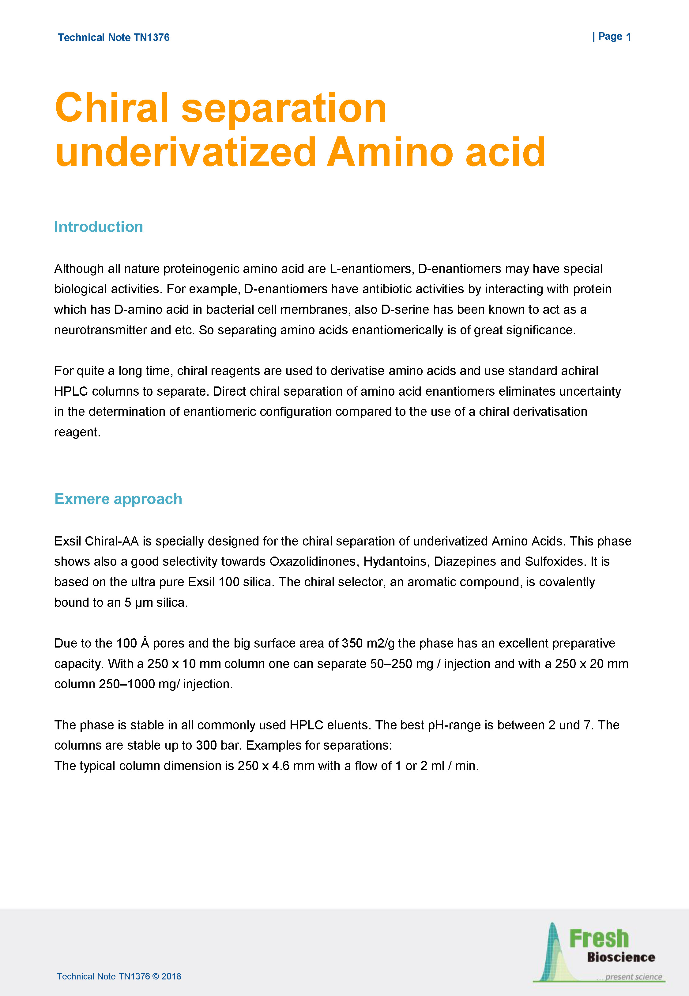 Exsil Chiral-AA是一款刷型手性固定相,能够高效识别氨基酸手性分子。此应用采用反相流动相分析常见α-氨基酸,无需衍生化,适合LCMS应用场景。